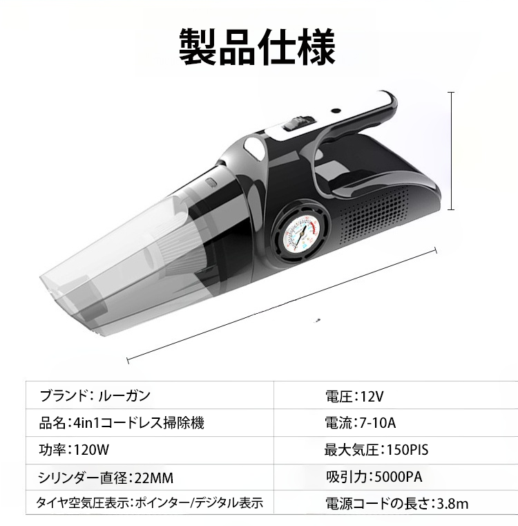 4in1コードレス掃除機の全体写真
